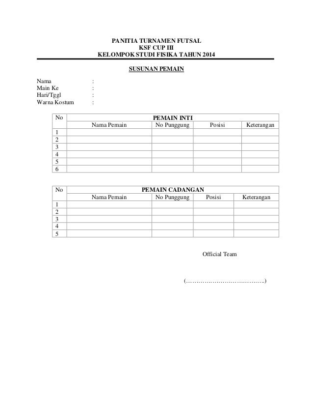 Contoh Formulir Futsal - Surat Box via suratbox.blogspot.com